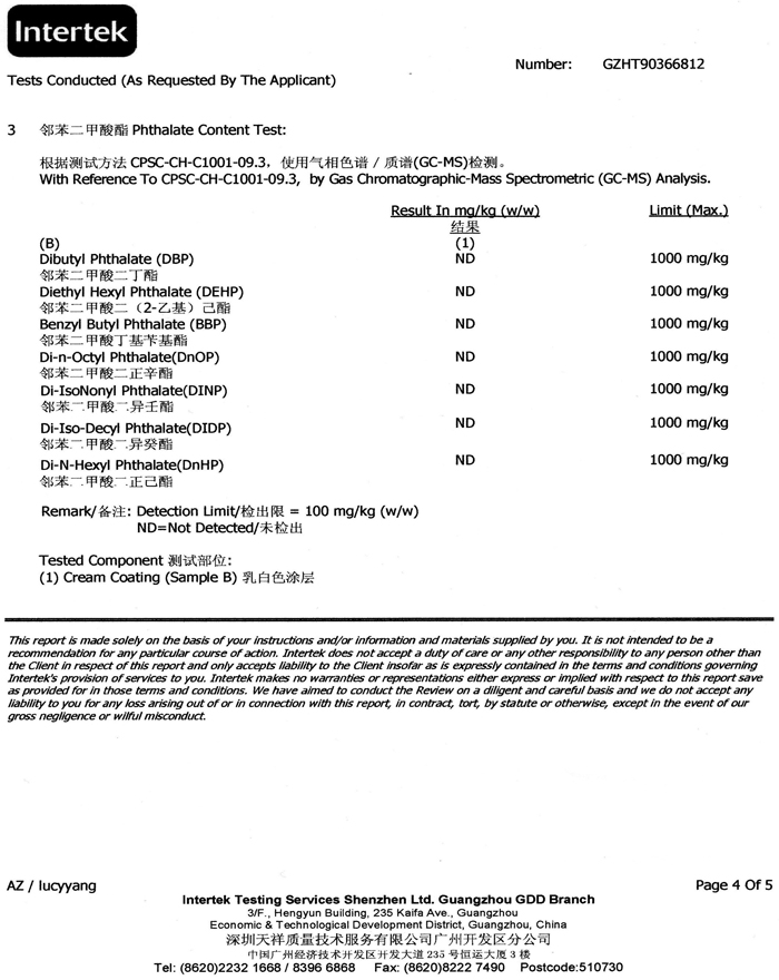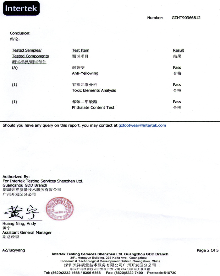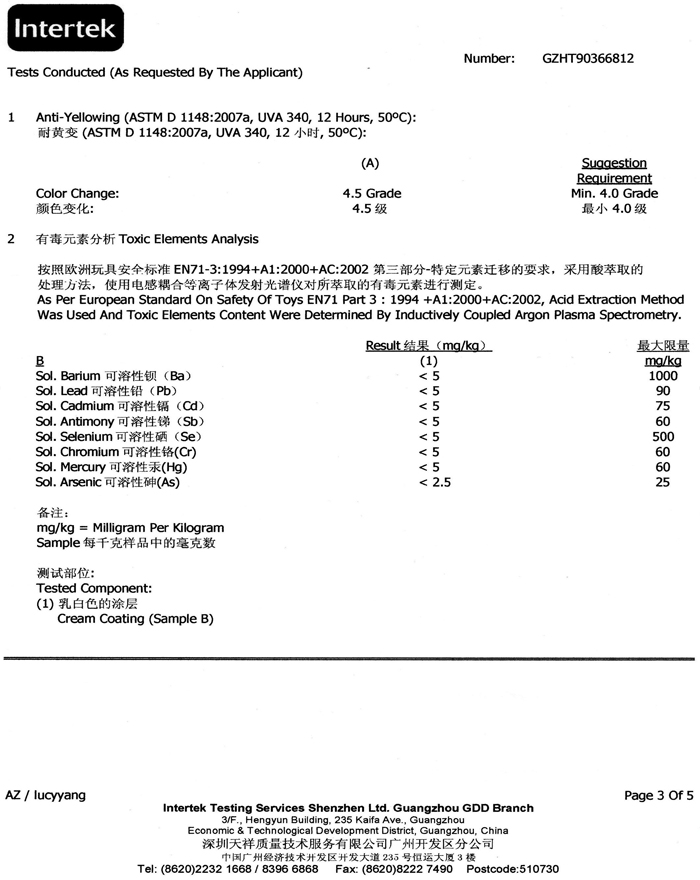 下面是八种重金属与六种邻苯二甲酸脂、耐黄变达到四级的检测资料